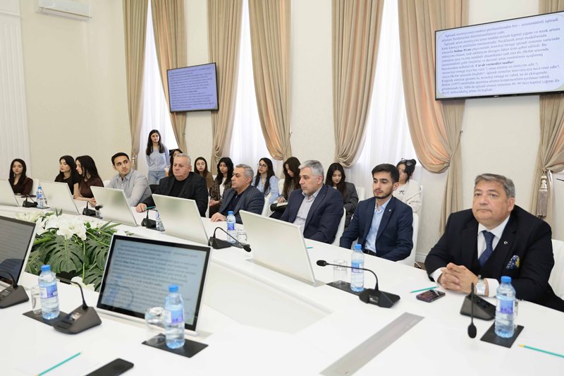 UNEC-in İqtisadi Araşdırmalar Elmi-Tədqiqat İnstitutunun əməkdaşlarının, professor-müəllim heyətinin və dissertantların iştirakı ilə baş tutan tədbir 2025-ci il üzrə İqtisadiyyat sahəsində Nobel Mükafatı laureatlarına həsr olunub.