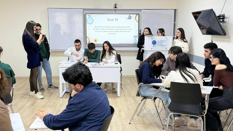 Ümumilikdə 19 tələbə, 5 komanda iştirak etdiyi yarışmada iştirakçılar müxtəlif mövzular üzrə suallara cavab verərək biliklərini nümayiş etdiriblər.