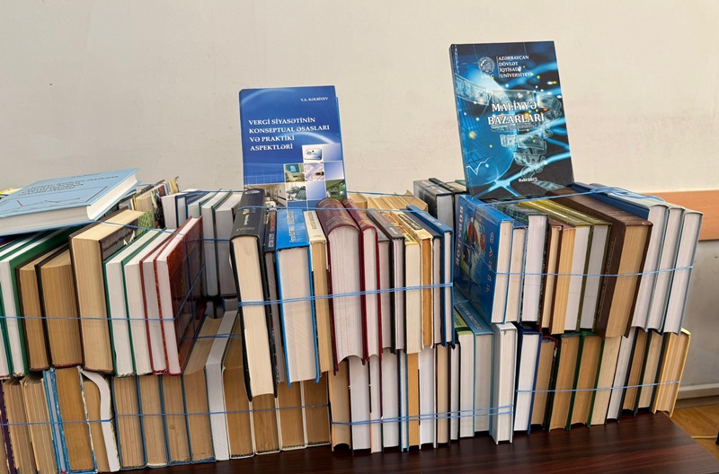 Professor Əvəz Ələkbərov UNEC rektorunun təşəbbüsünə qoşularaq Qarabağ Universitetinə 270-dən çox kitab bağışlayıb
