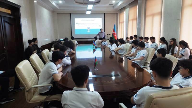 UNEC Rus İqtisad Məktəbinin (RİM) nümayəndələri direktor müavini Anar Eyyubov və “Tətbiqi iqtisadiyyat” kafedrasının dosenti Rauf Salayev abituriyentlərlə iş proqramı çərçivəsində 6 nömrəli məktəb-liseydə abituiyentlərlə görüş keçirib.