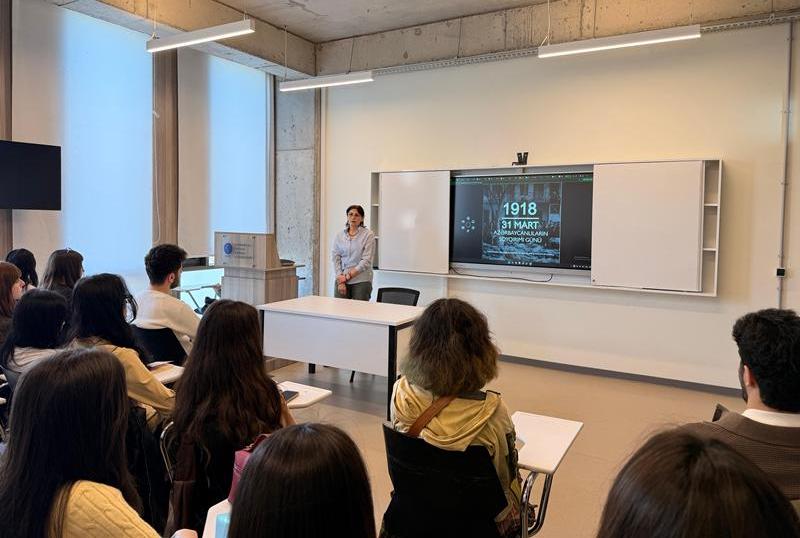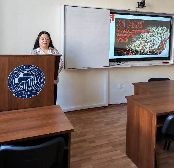 Azərbaycan Dövlət İqtisad Universitetinin (UNEC) Dizayn Məktəbində, Ümumi fənlərin tədrisinin təşkili departamentində keçirilən xüsusi dərslər zamanı soyqırımı qurbanlarının və şəhidlərin xatirəsi bir dəqiqəlik sükutla yad edilib, mövzuya həsr olunmuş videoçarxlar nümayiş etdirilib.