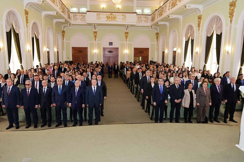 Tədbir iştirakçıları əvvəlcə Ümummilli Lider Heydər Əliyevin büstü önünə gül dəstələri düzərək, Ulu Öndərin əziz xatirəsini dərin ehtiramla yad ediblər.