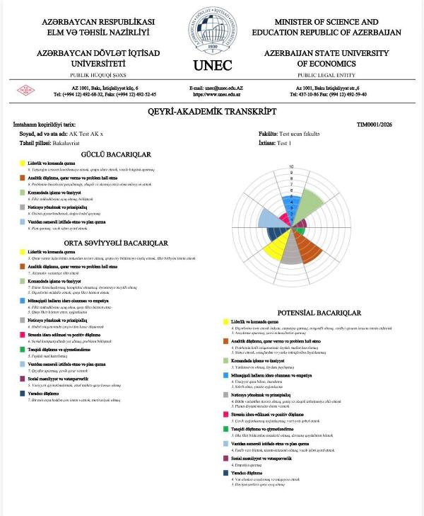 The “Non-Academic Transcript” project, which has been developed at the university over a period exceeding three years, has been successfully completed. This initiative will be implemented for the first time not only in Azerbaijan but also across the region.