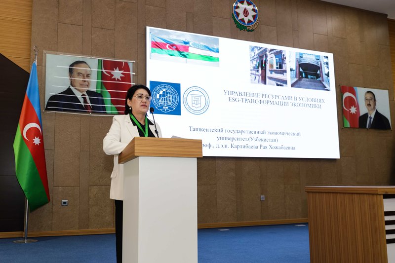 Professor Raya Karlibayeva of Tashkent State University of Economics delivered a report on “Resource Management within the Framework of ESG Economic Transformation,” focusing on mechanisms of resource allocation and governance in the context of sustainable development.
