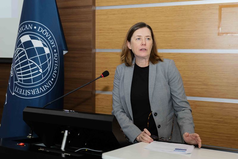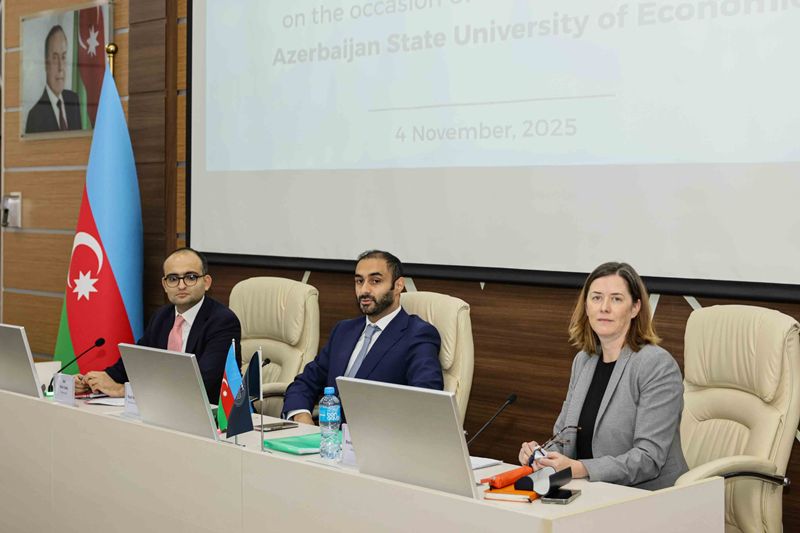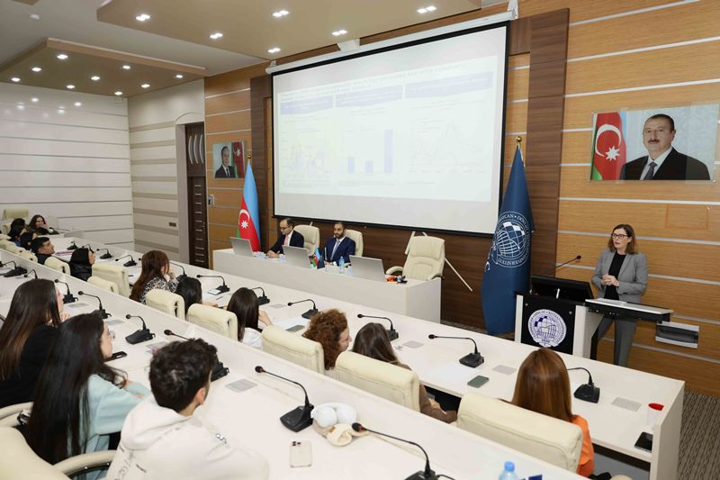 Представители Международного валютного фонда (МВФ) выступили с презентацией для студентов UNEC о глобальных и региональных экономических трендах.