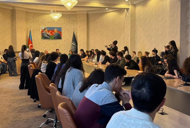 По инициативе Дипломатической организации Русской экономической школы UNEC состоялась встреча студентов, обучающихся по специальности международных отношений, международной торговли и логистики, с Чрезвычайным и Полномочным послом Казахстана в Азербайджане Алимом Байелем.