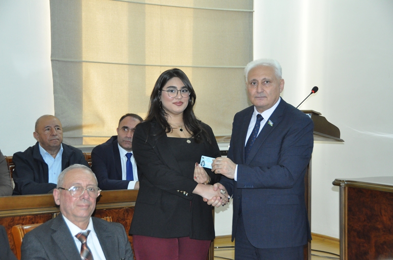 В конце студентам UNEC, ставшим новыми членами партии «Ени Азербайджан», были вручены билеты партии «Ени Азербайджан».