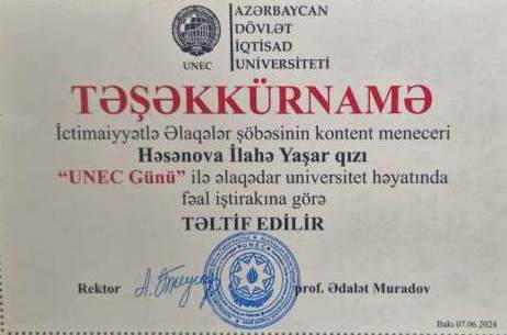 2016 - cı ildə - UNEC, Şəbəkə xidməti şöbəsinin baş mütəxəssisi keçirilmişdir.