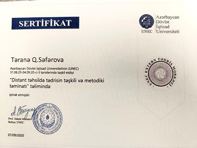 2023-cü ildə UNEC-də təşkil olunan yeni fənn üzrə təlim proqramında 8 fənn üzrə sertifikatın sahibi olmuşdur.