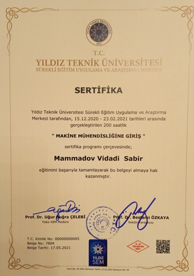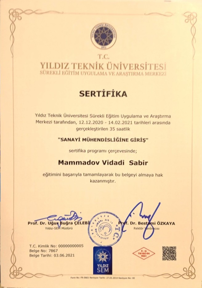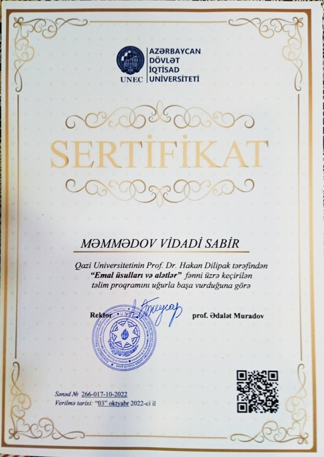 “Mühəndislik və tətbiqi elmlər” kafedrasının baş müəllimi
